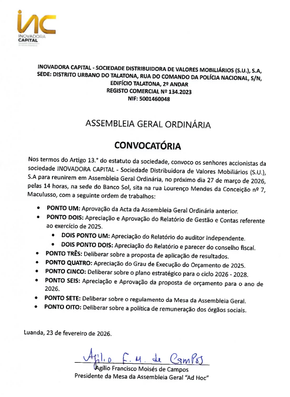 Inovadora Capital apoia o Campeonato de Polo em alusão aos 50 anos da Independência de AngolaNo passado dia 24 de Maio, realizou-se, no Mangais Polo Club, o Campeonato de Polo em alusão aos 50 anos da Independência de Angola, sob o lema “Três equipas, um só campeão!”. O evento reuniu atletas, entusiastas do desporto equestre e membros da comunidade num ambiente marcado pela celebração da história, da tradição e da inclusão. A Inovadora Capital, na qualidade de entidade comprometida com o desenvolvimento sustentável e o impacto social, esteve presente como parceira desta iniciativa, reconhecendo o seu valor enquanto plataforma de promoção da juventude.